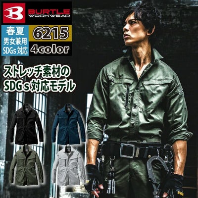 SDGs ユニセックス ストレッチ バートル BURTLE 作業着 6215 長袖シャツ 3L 作業服 おしゃれ JIS適合制電