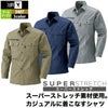 ◇機能:スーパーストレッチ・タテムラ糸・カジュアルスタイル・胸ファスナー付き大型野帳ポケット・袖アームタック・胸ペン差し・袖ペン差し