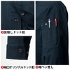 ◇機能:フルハーネス対応・刺子入りの立ち衿スタイル・両胸YKKファスナー付きビッグポケット・前隠しドットボタン・袖ペン差し・袖口オリジナルドットボタン・リベットで補強・脇スリット・ハーネス着用時にも使用可能なタテ型ビッグポケット