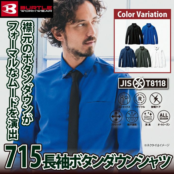 バートル BURTLE 作業着 インナー 2024春夏新作 715 長袖BDシャツ 5L 作業服 ドライ デオドランド JIS適合制電 UV