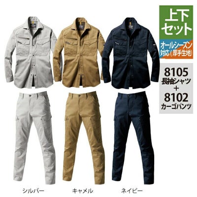 作業服 作業着 バートル シャツ バートル BURTLE 作業着 上下セット 8105 長袖シャツ と 8102 カーゴパンツ SS-LL 作業服 おしゃれ