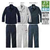 自重堂 JAWIN ジャウィン 作業服 上下セット 56704 ストレッチ長袖シャツ と 56702 ストレッチノータックカーゴパンツ S-LL ズボン 春夏用 作業着