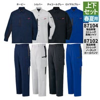 自重堂 作業服 上下セット 87104 長袖シャツ と 87102 ノータックカーゴパンツ SS-LL ズボン 春夏用 かっこいい おしゃれ ズボン 作業着