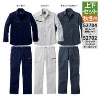 自重堂 JAWIN ジャウィン 作業服 上下セット 52704 ストレッチ長袖シャツ と 52702 ストレッチノータックカーゴパンツ S-LL 秋冬用 作業着