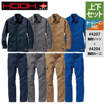 村上被服 HOOH 鳳凰 作業服 上下セット 4207 難燃シャツS-3L と 4204 難燃カーゴ SS-3L 作業着 作業ズボン