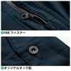 ◇機能:フルハーネス対応・刺子入りの立ち衿スタイル・両胸YKKファスナー付きビッグポケット・前隠しドットボタン・袖ペン差し・袖口オリジナルドットボタン・リベットで補強・脇スリット・ハーネス着用時にも使用可能なタテ型ビッグポケット