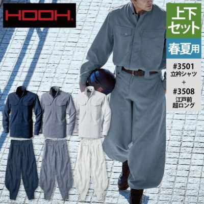村上被服 HOOH 鳳凰 作業服 上下セット 3501 立衿シャツM-3L と 3508 江戸前超ロング 73-100 作業着