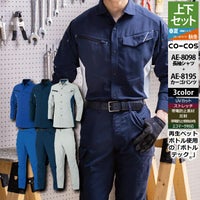 コーコス 作業服 上下セット AE-8098 エコストレッチ長袖シャツSS-3L と AE-8195 エコ裏綿ストレッチカーゴパンツ SS-3L 作業着 作業ズボン 秋冬用