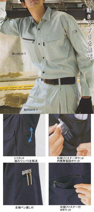 作業服 サンエス BC10319 長袖シャツ SS-LL
