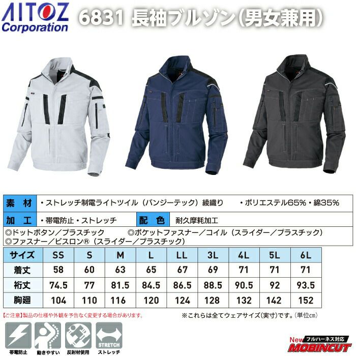 アイトス Aitoz 作業服 作業着 作業ズボン アイトス 作業服 作業着 Aitoz 春夏用 AZ-6836 長袖シャツ(男女兼用) SS-LL