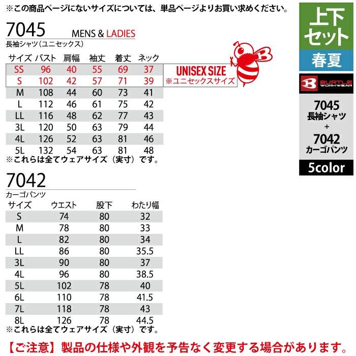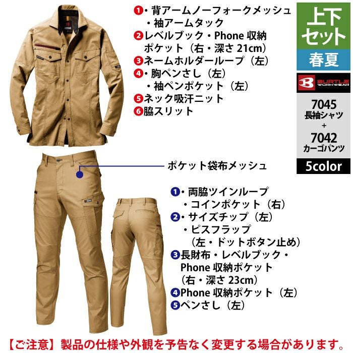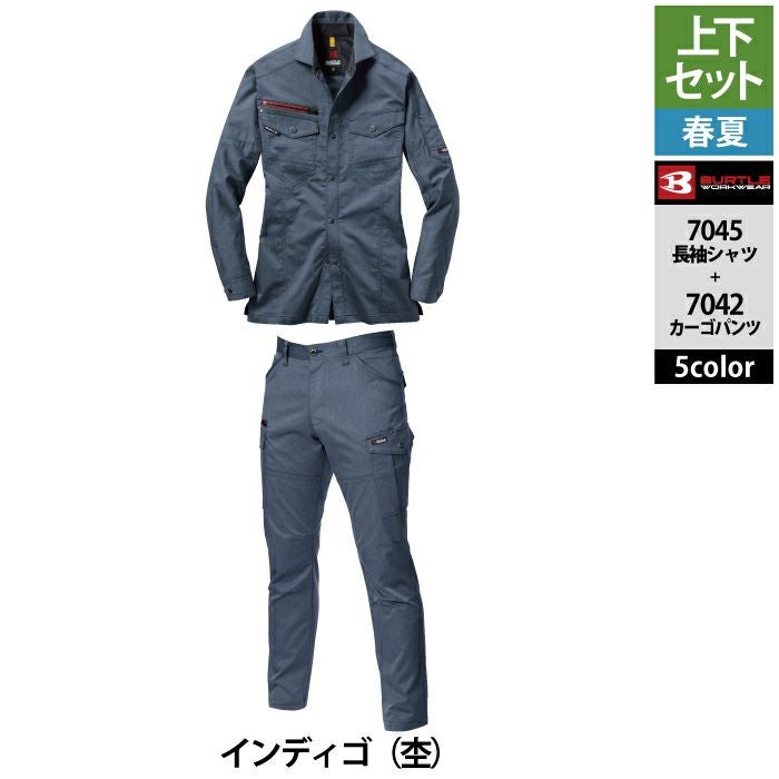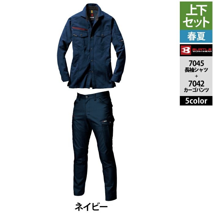 作業服 作業着 バートル シャツ 春夏用 バートル BURTLE 作業着 上下セット 7045 長袖シャツ と 7042 カーゴパンツ S-LL 作業服 おしゃれ 春夏