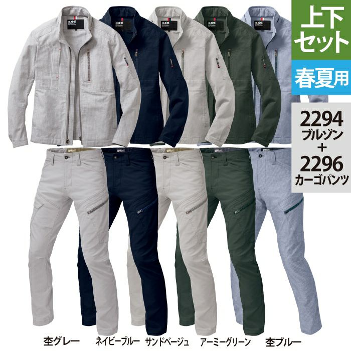 ジーベック XEBEC 作業服 作業着 作業ズボン ジーベック XEBEC 作業服 上下セット 2294 長袖ブルゾン と 2296 カーゴパンツ S-LL 春夏用 作業着 ズボン