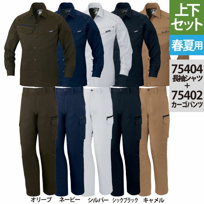 自重堂 作業服 作業着 作業ズボン 自重堂 作業服 上下セット 75404 長袖シャツ と 75402 ノータックカーゴパンツ S-LL ズボン 春夏用 かっこいい おしゃれ ズボン 作業着