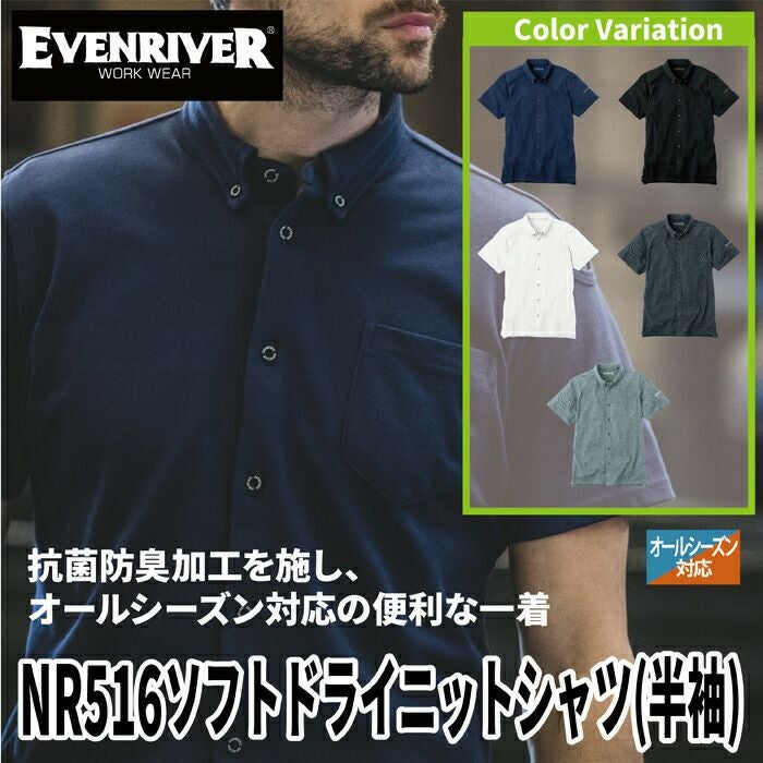 イーブンリバー 作業服 作業着 作業ズボン イーブンリバー EVENRIVER 作業服 インナー NR516 ソフトドライニットシャツ(半袖) M-4L 春夏秋冬 作業着 おしゃれ