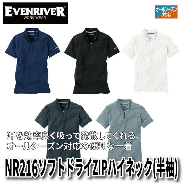 イーブンリバー 作業服 作業着 作業ズボン イーブンリバー EVENRIVER 作業服 インナー NR216 ソフトドライZIPハイネック(半袖) M-4L 春夏秋冬 作業着 おしゃれ