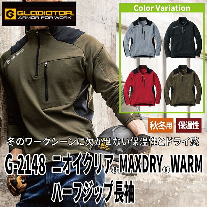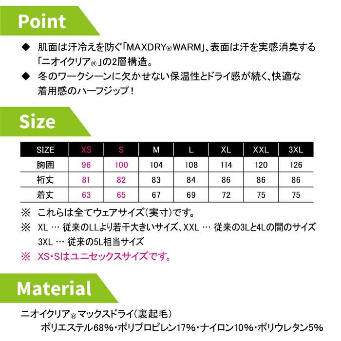 コーコス 作業服 作業着 作業ズボン コーコス 作業服 秋冬用 G-2148 ニオイクリアMAXDRYWARMハーフジップ長袖 XS-XL
