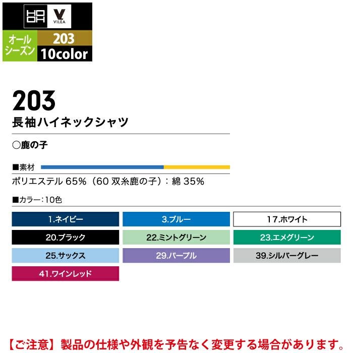 村上被服 HOOH 鳳凰 作業服 作業着 村上被服 HOOH 鳳凰 作業服 203 長袖ハイネックシャツ M-3L