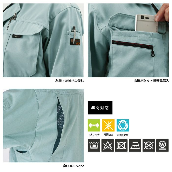 桑和 SOWA 作業服 作業着 作業ズボン 桑和 SOWA 作業服 0195-40 長袖サポートシャツ S-3L 作業服 春夏用