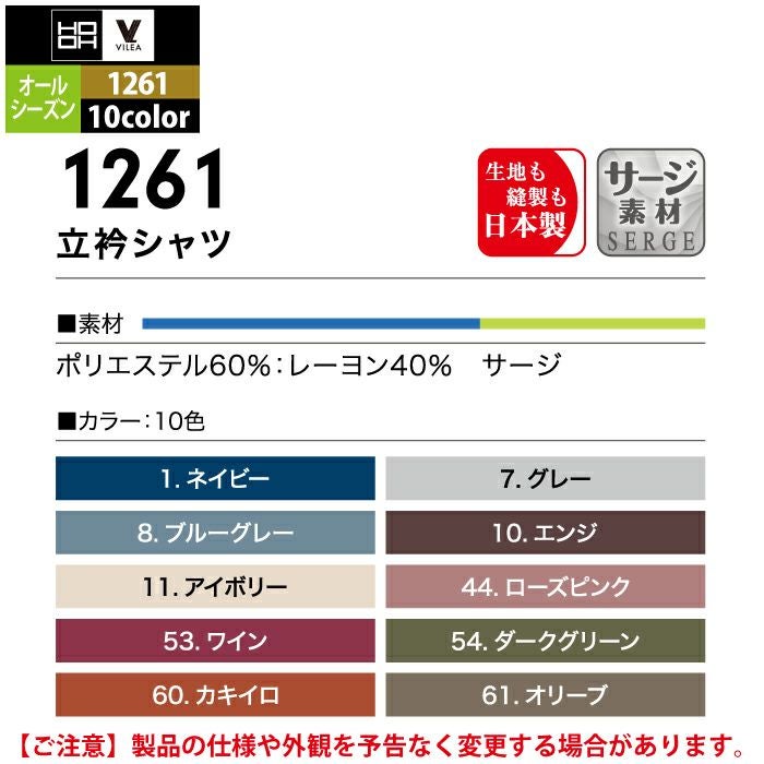 村上被服 HOOH 鳳凰 作業服 作業着 村上被服 HOOH 鳳凰 作業服 1261 立衿シャツ M-3L