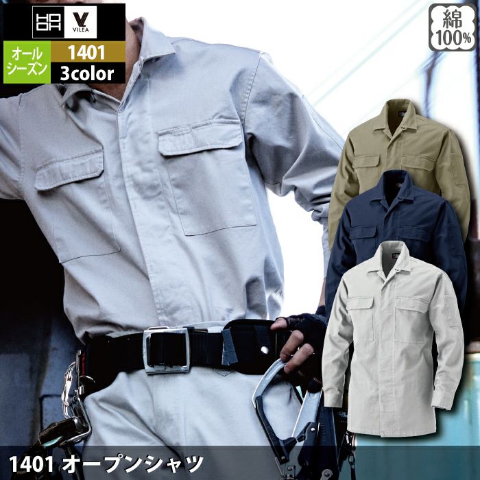 村上被服 HOOH 鳳凰 作業服 作業着 村上被服 HOOH 鳳凰 作業服 1401 オープンシャツ M-3L