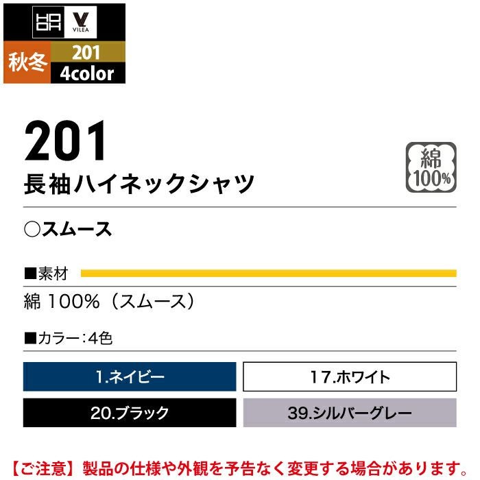 村上被服 HOOH 鳳凰 作業服 作業着 村上被服 HOOH 鳳凰 作業服 201 長袖ハイネックシャツ M-3L