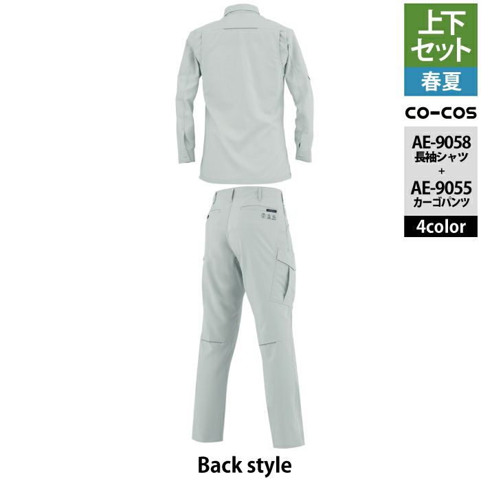 コーコス 作業服 作業着 作業ズボン コーコス 作業服 春夏用 上下セット AE-9058 エコ・ストレッチ長袖シャツS-3L と AE-9055 エコ・ストレッチカーゴパンツ SS-3L 作業着 作業ズボン