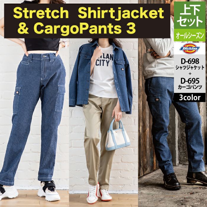 ディッキーズ Dickies 作業服 作業着 作業ズボン ディッキーズ Dickies 作業服 作業着 オールシーズン 上下セット D-698 ストレッチウォバッシュシャツジャケットS-3XL と D-695 カーゴパンツ SS-6L