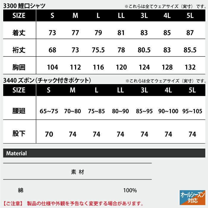 村上被服 HOOH 鳳凰 作業服 作業着 村上被服 HOOH 鳳凰 作業服 上下セット 3300 鯉口シャツS-3L と 3440 ズボン(チャック付きポケット) S-3L 作業着 作業ズボン