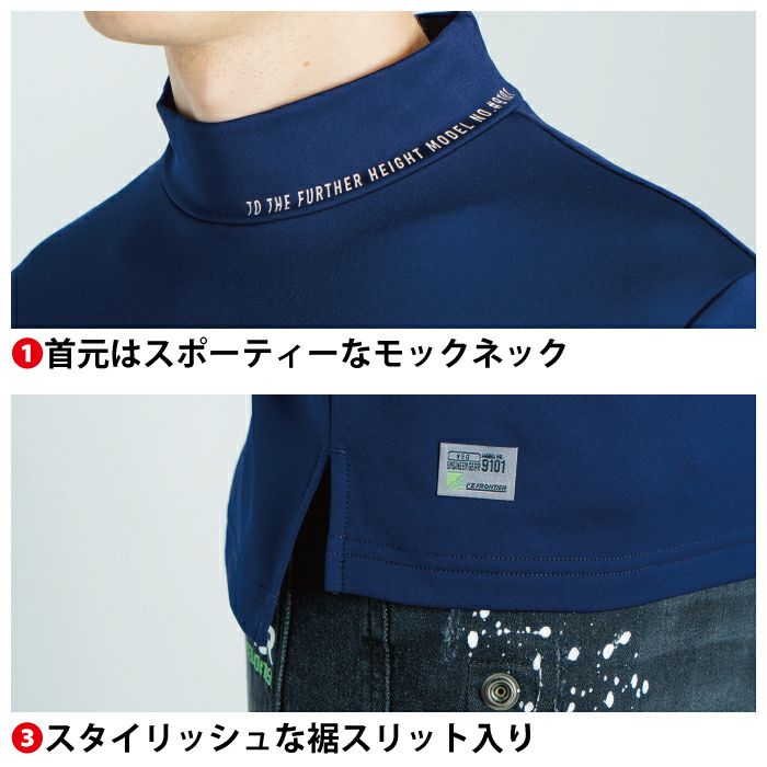 アイズフロンティア 作業服 作業着 作業ズボン アイズフロンティア 作業服 9101 裏起毛ストレッチ長袖モックネックシャツ S-3L 秋冬用