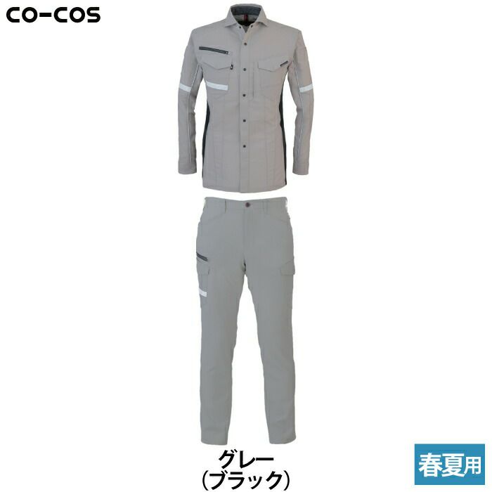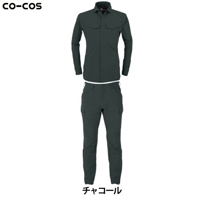 コーコス 作業服 作業着 作業ズボン コーコス 作業服 上下セット A-9078 ストレッチ長袖シャツM-3L と A-9075 ストレッチカーゴパンツ SS-3L 春夏用 かっこいい おしゃれ 作業着 ズボン
