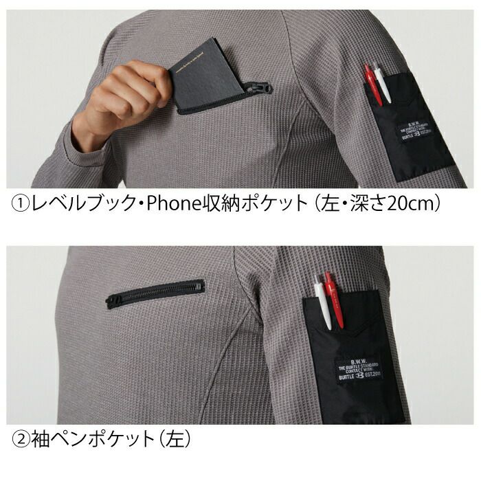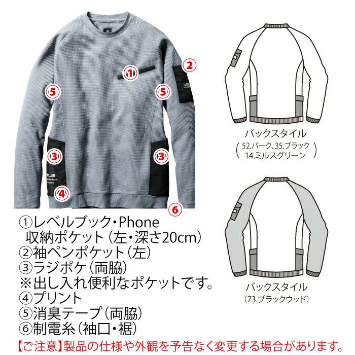 収納力抜群のワッフルトレーナー バートル BURTLE 作業着 インナー 4080 エンジニアシャツ S-XXL 作業服 秋冬用 ドライ 保温 消臭 ワッフル ユニセックス