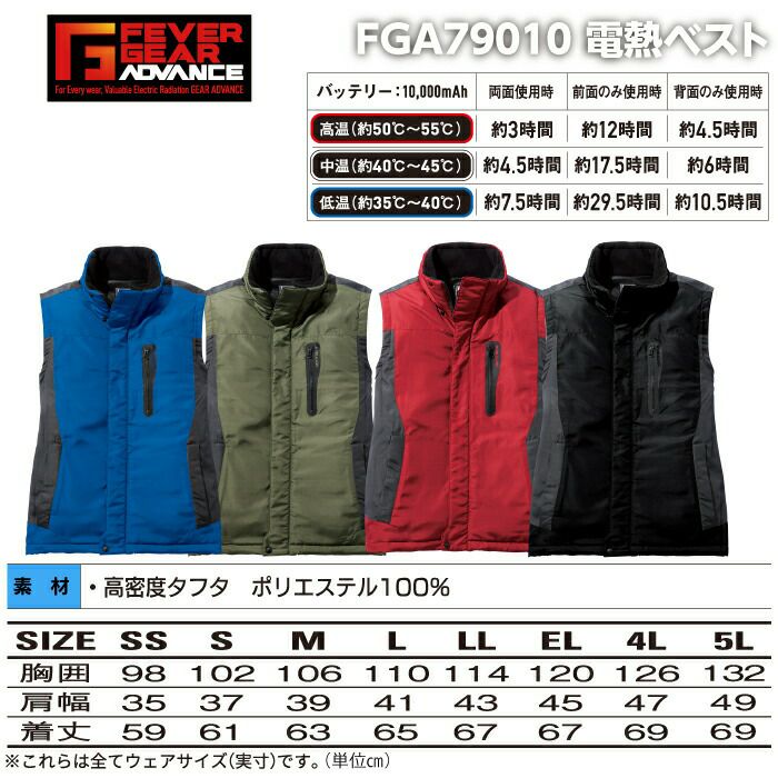 作業服 作業着 作業ズボン メンズ レディース 作業服 秋冬用 自重堂 作業服 作業着 FGA79010 電熱ベスト 4L-5L