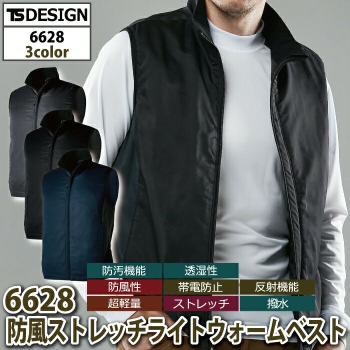 藤和 TSDESIGN 作業服 作業着 作業ズボン 藤和 TSDESIGN 作業服 秋冬用 6628 防風ストレッチライトウォームベスト S-LL