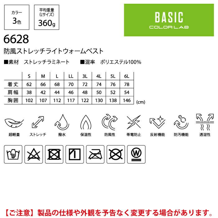 藤和 TSDESIGN 作業服 作業着 作業ズボン 藤和 TSDESIGN 作業服 秋冬用 6628 防風ストレッチライトウォームベスト 5L-6L