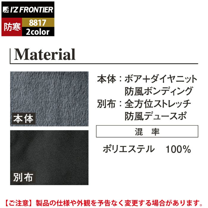 アイズフロンティア 作業服 作業着 作業ズボン アイズフロンティア 作業服 8817 ハイブリットウインドブロックボアフリースベスト S-4L 秋冬用