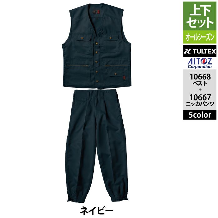 アイトス Aitoz 作業服 作業着 作業ズボン アイトス 作業服 作業着 Aitoz 上下セット 10668 ベストM-3L と 10667 ニッカパンツ 73-100 作業着 作業ズボン