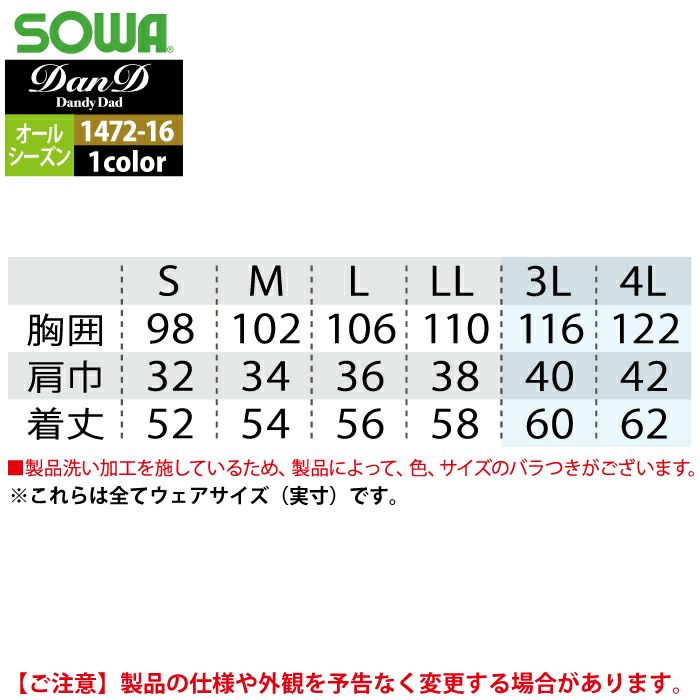 桑和 SOWA 作業服 作業着 作業ズボン 桑和 SOWA 作業服 1472-16 ベスト 3L オールシーズン