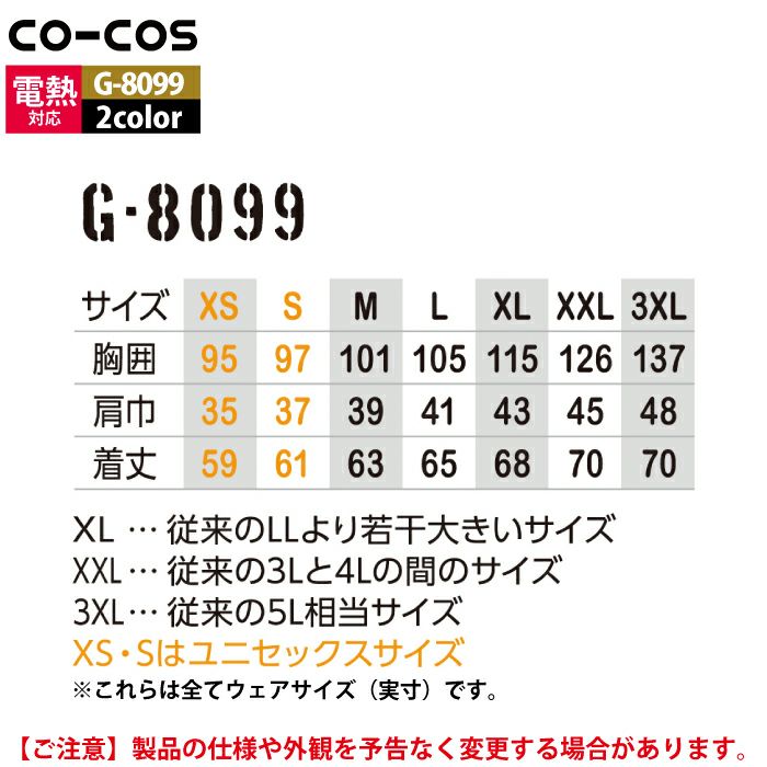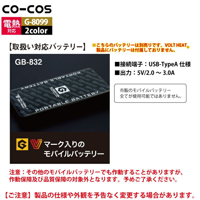 作業服 作業着 コーコス 作業服 秋冬用 G-8099 VOLTHEAT2WAYベスト XS-XL
