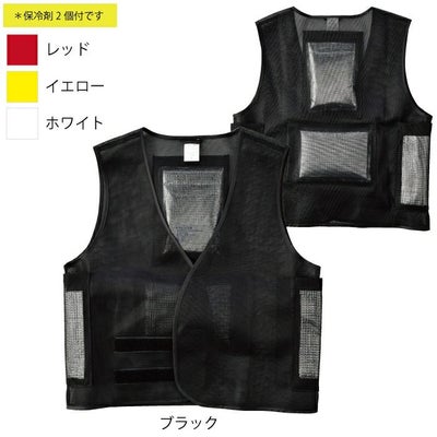 ●関連商品※RD9878保冷剤単体●春夏用●素材:ポリエステルメッシュ ポリエステル100%●前合わせ強力マジックテープ、保冷剤収納ポケット、保冷剤2個付き●サイズ:F(着丈/55、肩巾/41.5、胸囲/106)、XL(着丈/62、肩巾/46.5、胸囲/130)●カラー:レッド、ブラック、イエロー、ホワイト