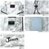 存在感際立つ空調服ジャケット。光沢感あるカモフラ柄とデニム柄をプリントしたカジュアルテイスト空調服。<光沢カモフラプリント>カモフラプリントの上に光沢感のある転写ラバープリントを部分的に施し、光沢カモフラ柄を表現しています。<デニム柄プリント>デニム調のプリントを施し、デニム柄を表現しています。※ファン・バッテリー・ケーブルは別売りです。【お取扱い上の注意】・専用のバッテリー以外は使用しないでください。故障や事故の原因になります。・炎天下の車内等(高温の場所)に放置しないでください。・ファンの羽が折れる可能性がある為、エアーガンによるファンの清掃は行わないでください。・この商品は火気を扱う現場では着用しないでください。