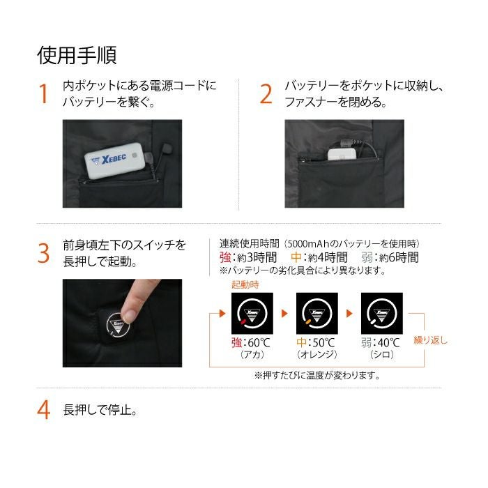 ジーベック XEBEC 作業服 作業着 作業ズボン ジーベック XEBEC 作業服 165 ヒーター内蔵ベスト S-LL 作業服 秋冬用 作業着