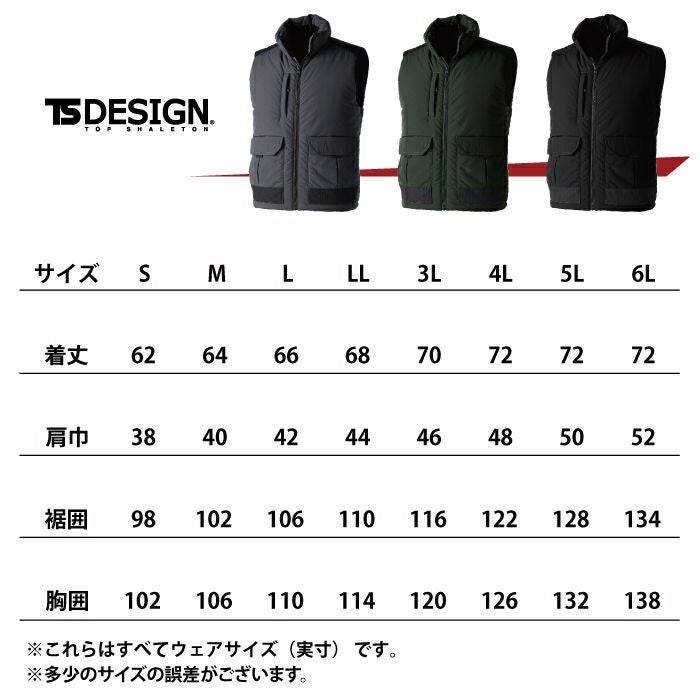 藤和 TSDESIGN 作業服 作業着 作業ズボン 藤和 TSDESIGN 作業服 54328 TSDELTAナイロン中綿ワークベスト 5L-6L 作業服 秋冬用