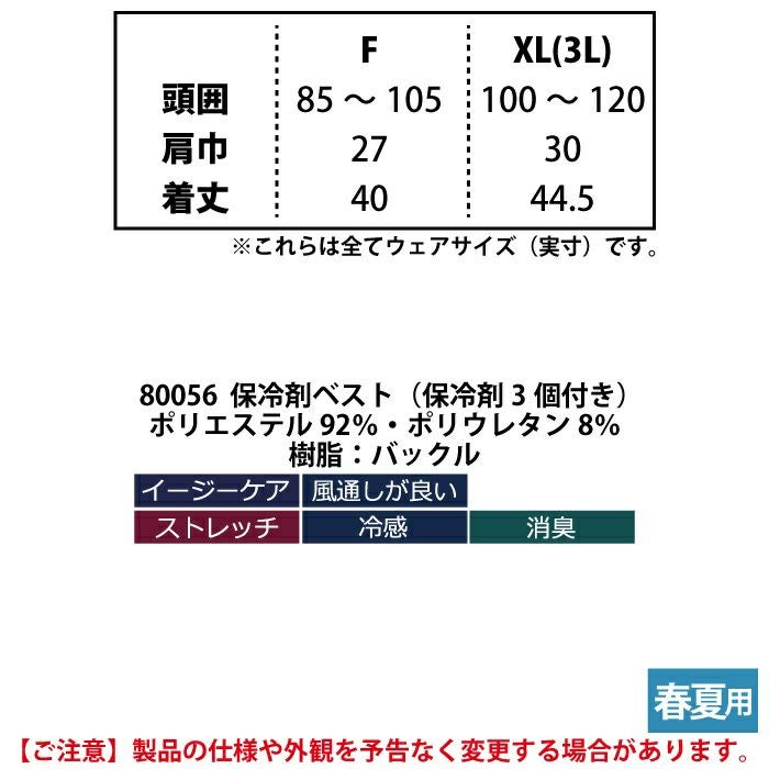 桑和 SOWA 作業服 作業着 作業ズボン 桑和 SOWA 作業服 80056 保冷剤ベスト XL-F 作業服 春夏用