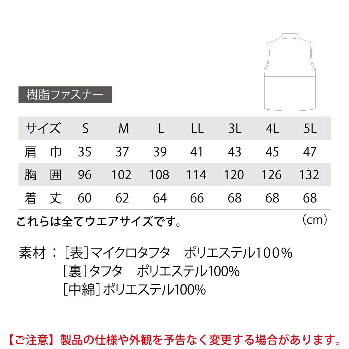 ジーベック XEBEC 作業服 作業着 作業ズボン ジーベック XEBEC 作業服 165 ヒーター内蔵ベスト 4L-5L 作業服 秋冬用 作業着