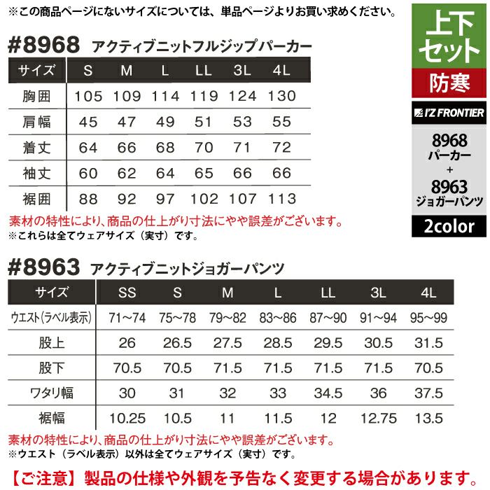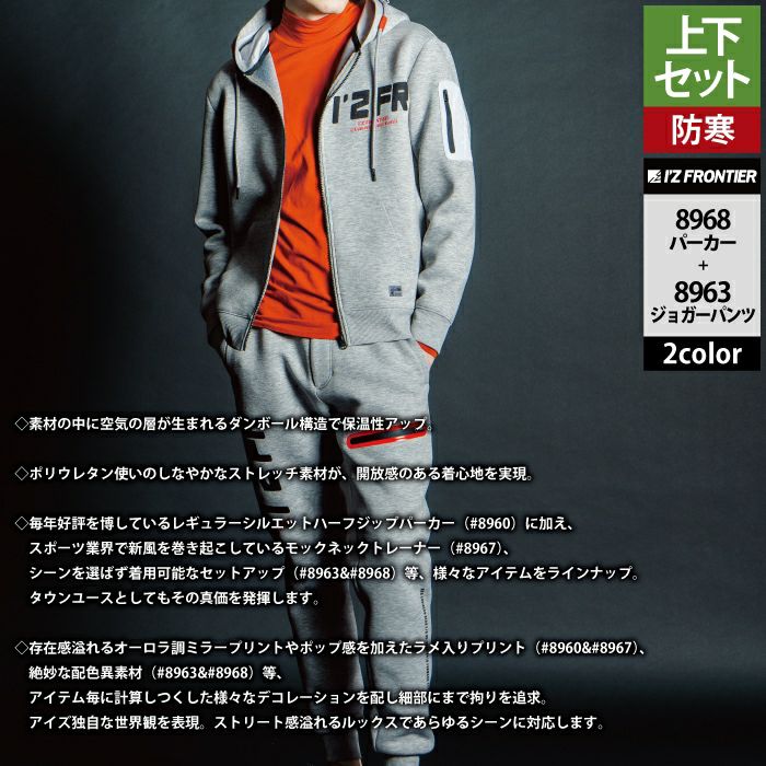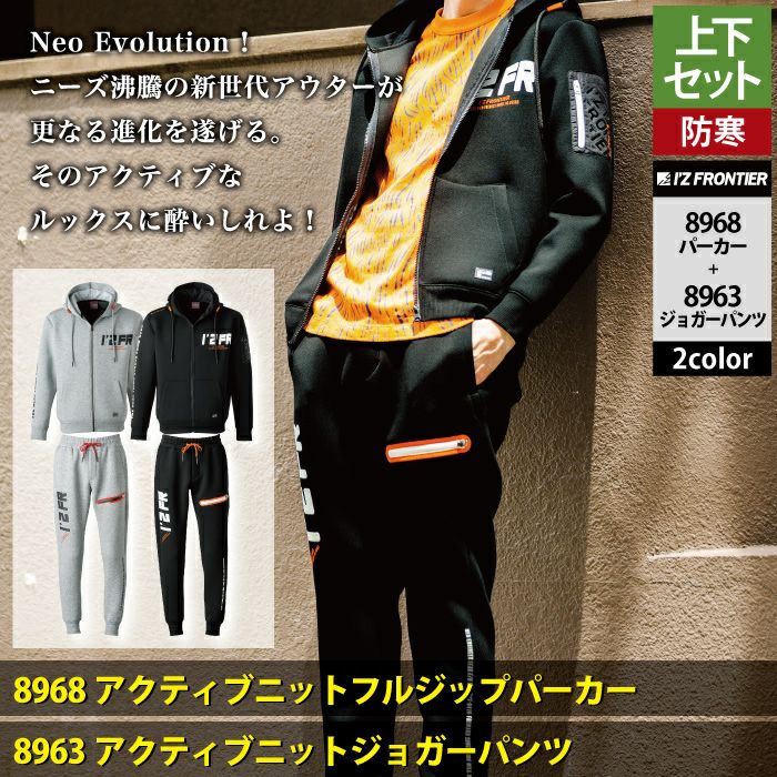 アイズフロンティア 作業服 作業着 上下セット アイズフロンティア 作業服 上下セット 8968 アクティブニットフルジップパーカーS-4L と 8963 アクティブニットジョガーパンツ SS-4L 秋冬用