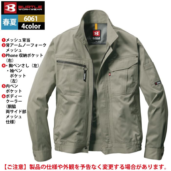 バートル BURTLE 作業着 6061 長袖ブルゾン 5L 作業服 春夏