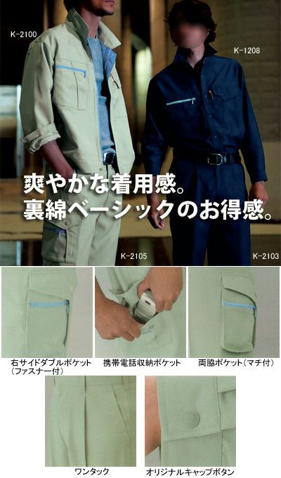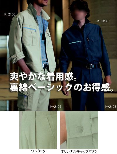 作業服 コーコス K-2105 ワンタックフィッシング W70-W85