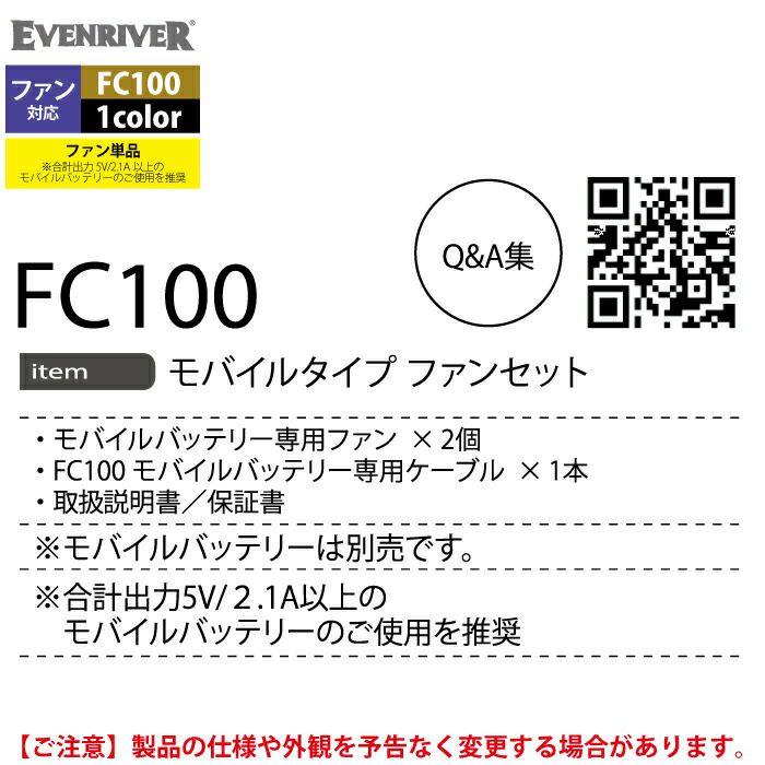 イーブンリバー 作業服 作業着 作業ズボン イーブンリバー EVENRIVER 作業服 FC100 モバイルタイプファンセット F 春夏 ファン付きウェア 作業着
