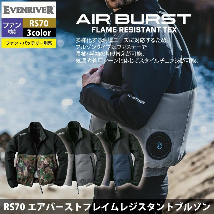 イーブンリバー 作業服 作業着 作業ズボン ファン付きウェア (服のみ) イーブンリバー EVENRIVER 作業服 RS70 エアバーストフレイムレジスタントブルゾン S-5LL 春夏 作業着