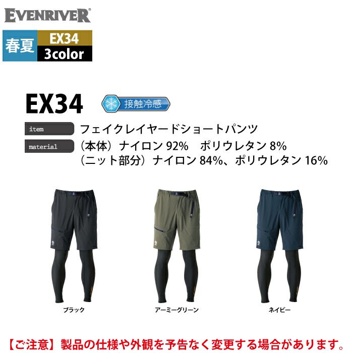イーブンリバー 作業服 作業着 作業ズボン イーブンリバー EVENRIVER 作業服 作業ズボン EX34 フェイクレイヤードショートパンツ M-4L 春夏 作業着